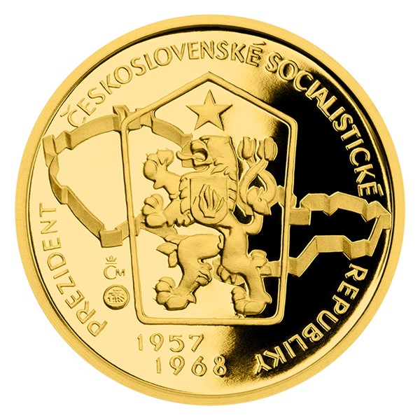 Tyto změny jsou zakomponovány také do podoby zlatého dukátu. Reverzní straně dominuje obměněný státní znak. „Napříč mincovním polem je obrys území Československé republiky ohraničené zdí symbolizující tak pevně hlídané hranice zvenčí i zevnitř. Opis tvoří text PREZIDENT ČESKOSLOVENSKÉ SOCIALISTICKÉ REPUBLIKY a letopočty prezidentského funkčního období 1957 a 1968,“ dodává autor výtvarného návrhu ak. soch. Jiří Dostál. Averzní strana dukátu nese portrét šestého československého prezidenta, který měl být údajně na zasedání Valného shromáždění OSN označen za nejkrásnějšího politika planety a kterému se přezdívalo „schöne Tony“, ovšem už se stopami stárnutí a únavy. Portrét dokreslují životopisná data prezidenta 1904 a 1975, jméno ANTONÍN NOVOTNÝ a text, který vystihuje dobu jeho vlády ZAVEDENA SOCIALISTICKÁ ÚSTAVA.