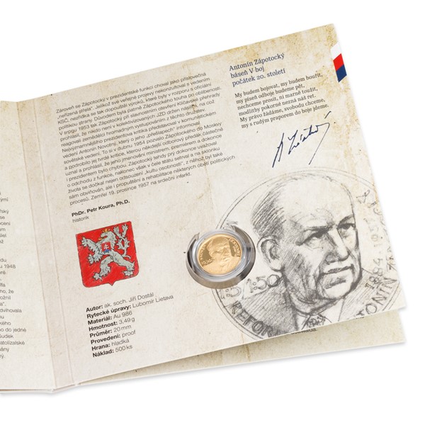 Dějiny naší země mají své šťastné okamžiky a stejně tak i místa vysloveně tragická. V každém období stál v čele státu někdo, kdo nesl zodpovědnost za jeho vzlety i pády. V naší československé historii to byli prezidenti, jimž Česká mincovna věnovala atraktivní sérii pamětních medailí z ryzího zlata. Po Emilu Háchovi a Klementu Gottwaldovi získává svůj dukátdalší rozporuplná postava – Antonín Zápotocký.