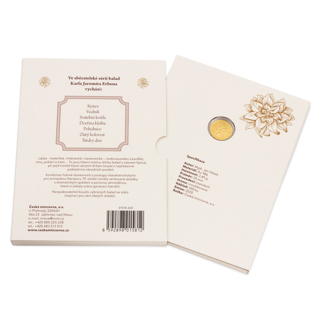 Medailér MgA. Jan Hásek, autor zlatých dukátů, se při tvorbě reliéfu nechal unést depresivní atmosférou Erbenovy sbírky. Averzní strana ražby je stejně jako příběh balady rozdělená na svět nad hladinou a pod ní. Horní část připomíná zlomový okamžik, kdy se dívka při praní prádla propadne do vody. Spodní části pak vévodí siluety dívky, vodníka i jejich dítěte. Reverzní strana, která je společná celé sérii, předkládá bohatý pugét, ve kterém se vedle nejrůznějších květin ukrývá lidská lebka.