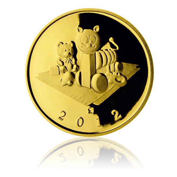Završením série medailí k významným životním událostem je zlatý dukátek k narození dítěte. Česká mincovna tak navazuje na historickou tradici Svatováclavských dukátů, které v minulosti dávali prarodiče a kmotři dětem po narození do kolébky. I v chudých rodinách dostávalo miminko do kolébky zlaťák, aby v životě netrpělo nouzí. Motivy medailí k narození dítěte mincovna obměňuje. Na averzní straně je vyobrazeno dítě, ležící na bříšku na přebalovacím pultu, s napřaženou ručičkou a chrastítkem. Motiv uzavírá opis „Dukát k narození dítěte“. Na reverzní straně je kompozice hraček, doplněná v opise letopočtem „2012“.