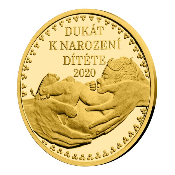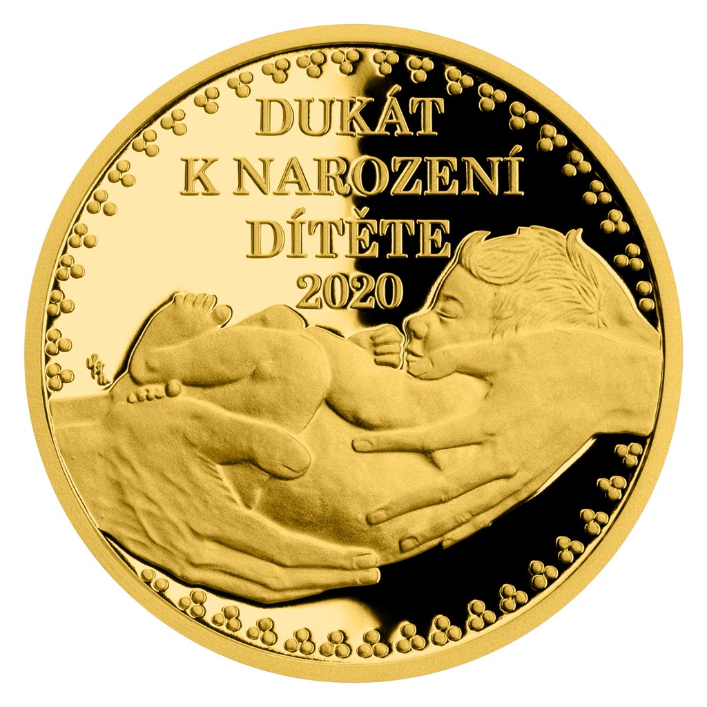 Podoba dukátu pro rok 2020 je dílem nadané medailérky Lenky Nebeské, DiS. Averzní strana je věnována spícímu miminku, které drží v dlaních jeho rodiče, a nápisu DUKÁT K NAROZENÍ DÍTĚTE 2020. Reverzní strana pak patří tradiční dětské hračce – houpacímu koníkovi.