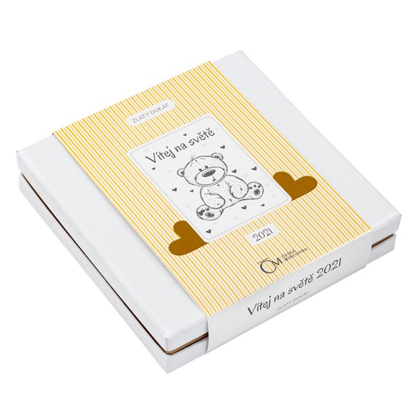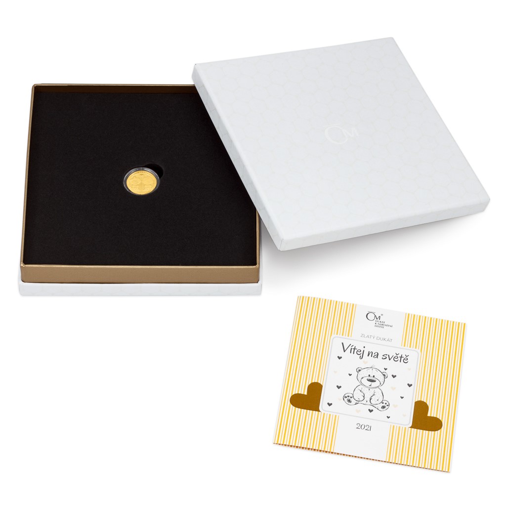 Speciální dárkové balení obsahuje vedle dukátu také certifikát pravosti s prostorem pro vepsání osobního věnování a údajů o miminku.