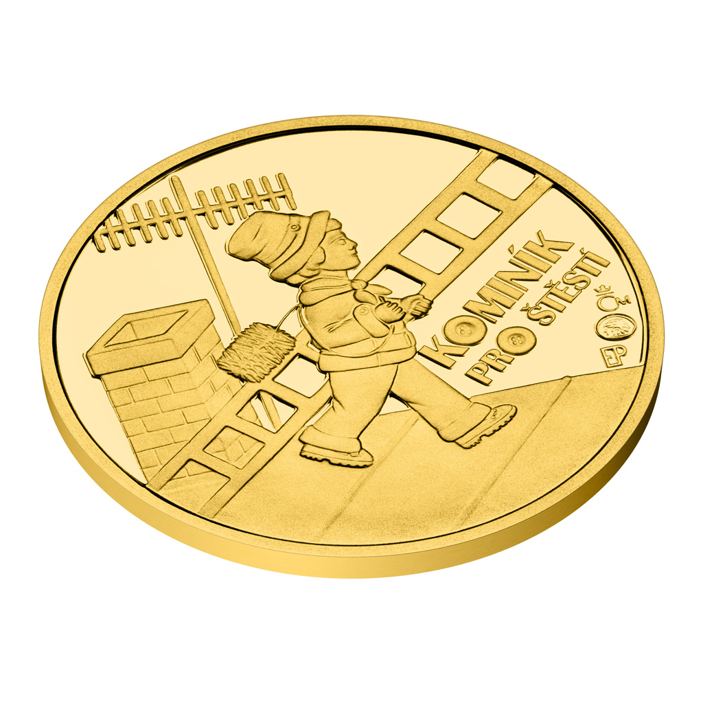 Zlatý dukát Kominík pro štěstí s věnováním proof