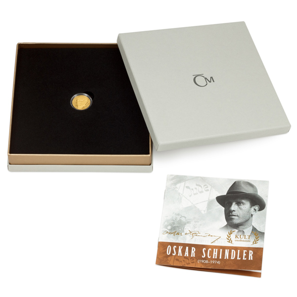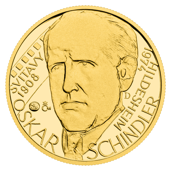 Jedenáctý zlatý dukát České mincovny z cyklu s názvem Kult osobnosti připomíná rozporuplnou postavu Oskara Schindlera.