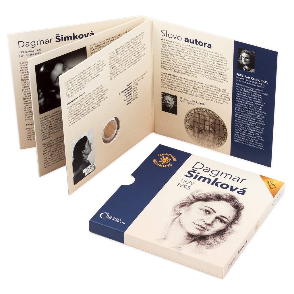 Druhou ženou, která se představuje na zlatém dukátu České mincovny z cyklu Národní hrdinové, se stala Dagmar Šimková.