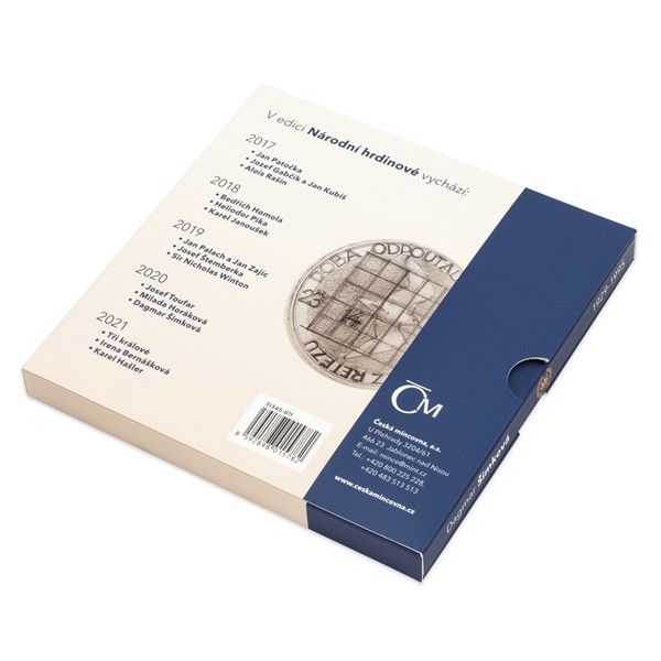 Dukát je zasazen do výpravného balení v podobě knížky, která obsahuje pojednání historika PhDr. Petra Koury, Ph.D. Kompletní kolekci Národních hrdinů si můžete uložit do praktického sběratelského boxu, který rovněž najdete v nabídce České mincovny.