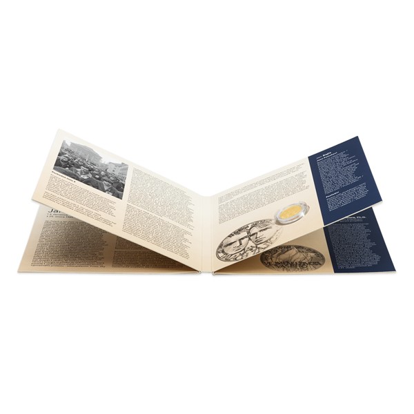 Nedílnou součástí dukátu je speciální balení v podobě knížky s pojednáním renomovaného historika PhDr. Petry Koury, Ph.D.