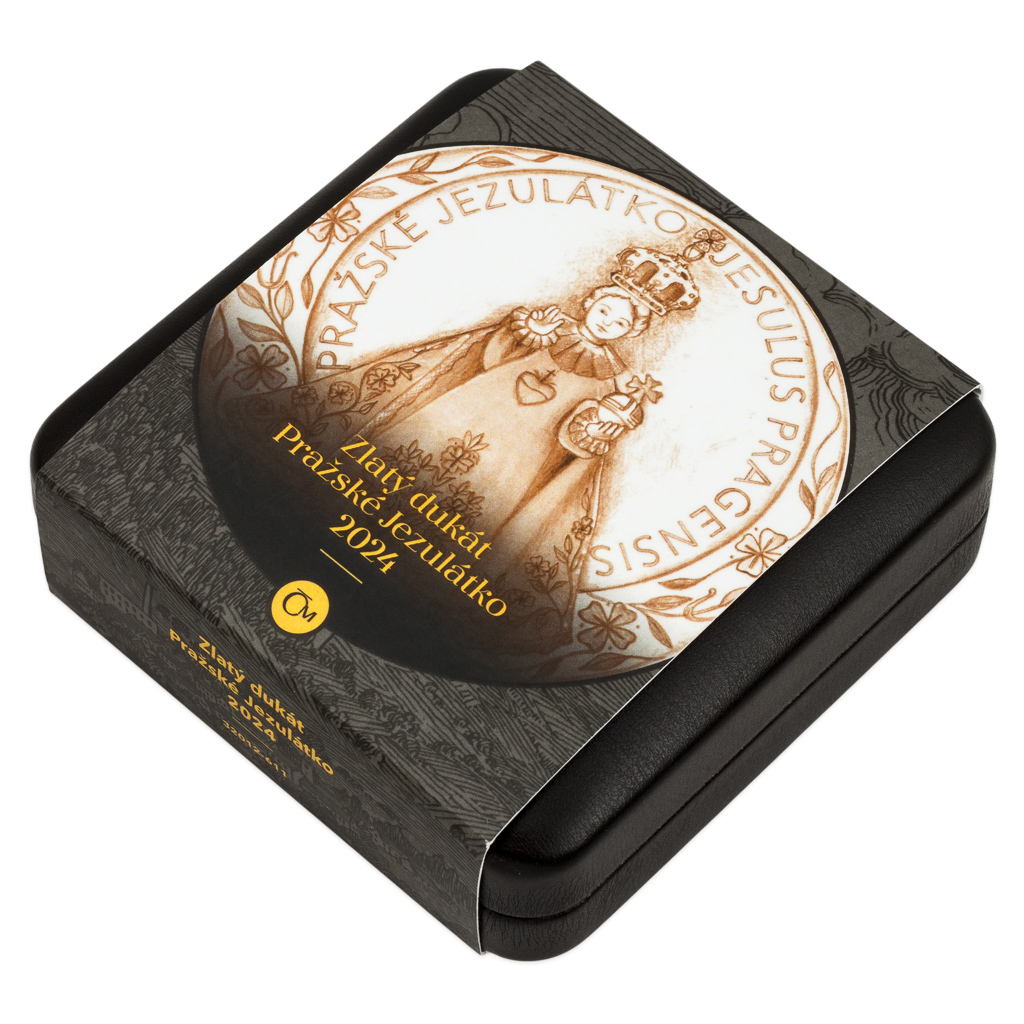 Zlatý dukát je stejně jako v roce 2023 dílem medailérky Evy Prouskové, DiS. Protože zázračná soška pravidelně mění šat, mění se i averzní strana dukátu – v roce 2024 má na sobě Jezulátko roucho, které symbolizuje pokání. Žehnající děťátko je obklopeno květinovým dekorem a česko‑latinským opisem PRAŽSKÉ JEZULÁTKO – JESULUS PRAGENSIS. Reverzní strana pak nese dva královské atributy Pražského Jezulátka – korunu a jablko. Kompozici reverzu dotvářejí ještě mušle a perly – motivy převzaté z koruny, která byla darem pro Jezulátko od papeže Benedikta XVI.