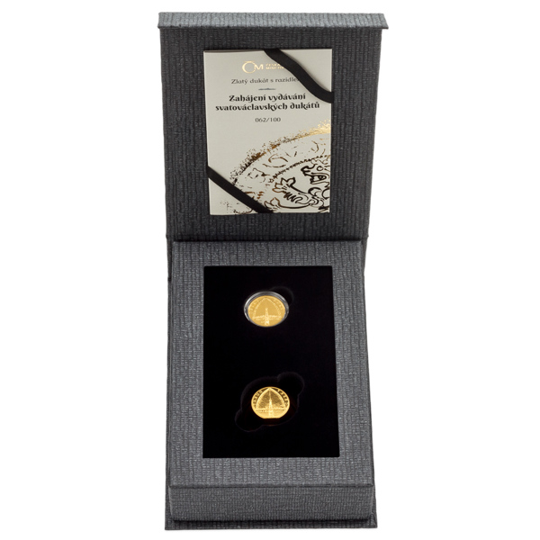 Unikátní edice zlatého dukátu je opatřena reliéfním číslováním. Součástí balení je výjimečný dárek v podobě originálního razidla.