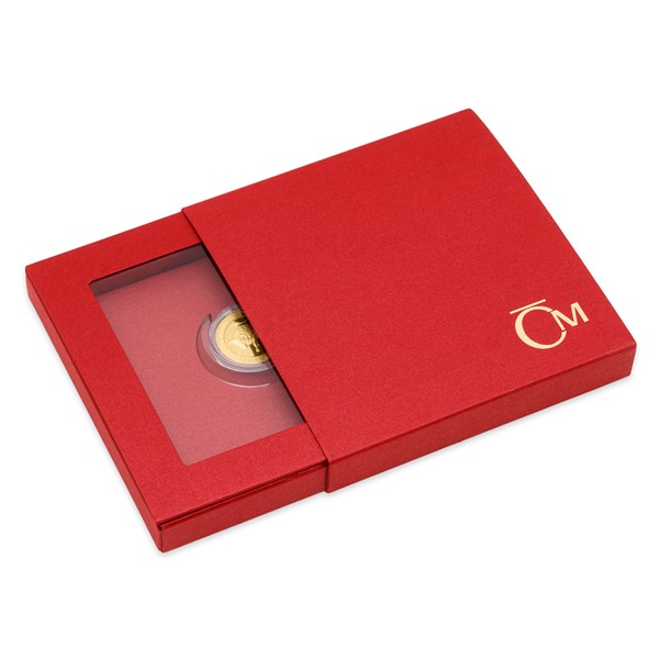 Dukáty ze zvířetníkové série jsou baleny do rafinované etue, která díky průhlednému víčku a stojánku slouží rovněž jako stylový rámeček.