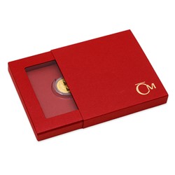 Speciální balení s průhledným víčkem a stojánkem slouží také jako rámeček pro vystavení zlatého talismanu.