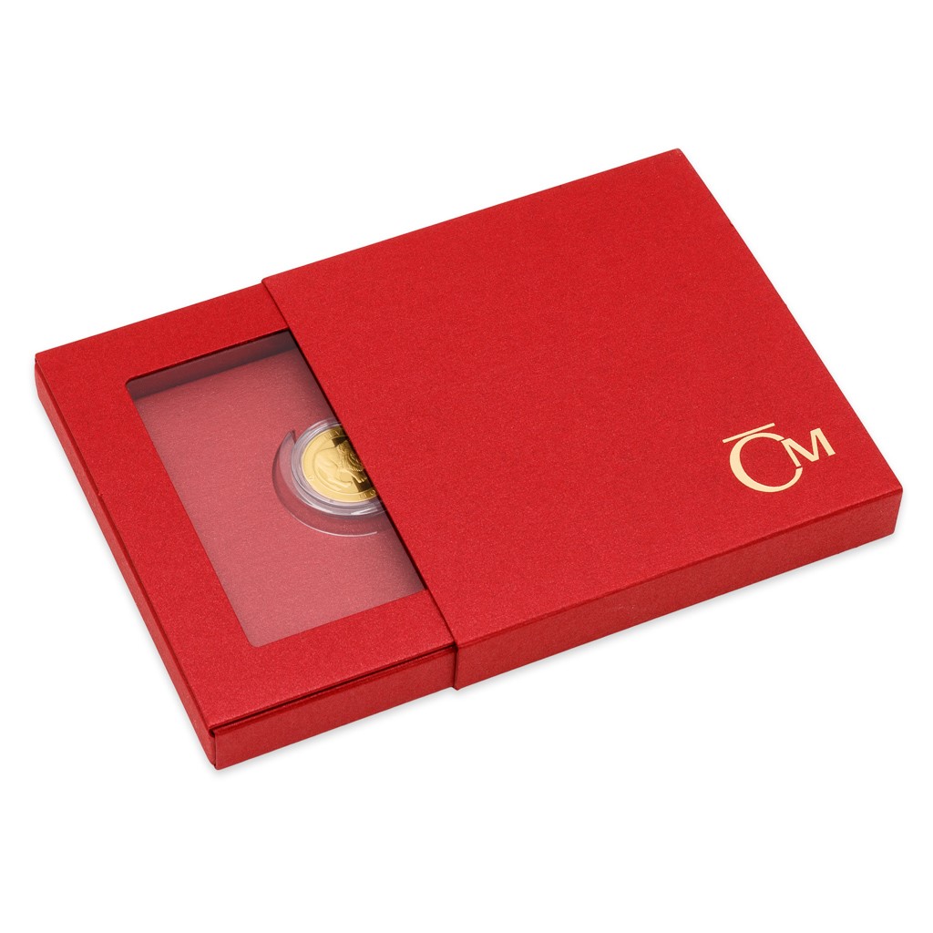 Součástí každé emise je praktické balení, které se jednoduše promění v rámeček sloužící k vystavení dukátu.