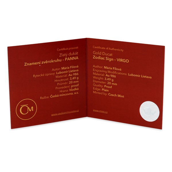 Zlatý dukát České mincovny ze série 12 znamení zvěrokruhu se stane talismanem pro štěstí každému, kdo se narodil ve znamení Panny.