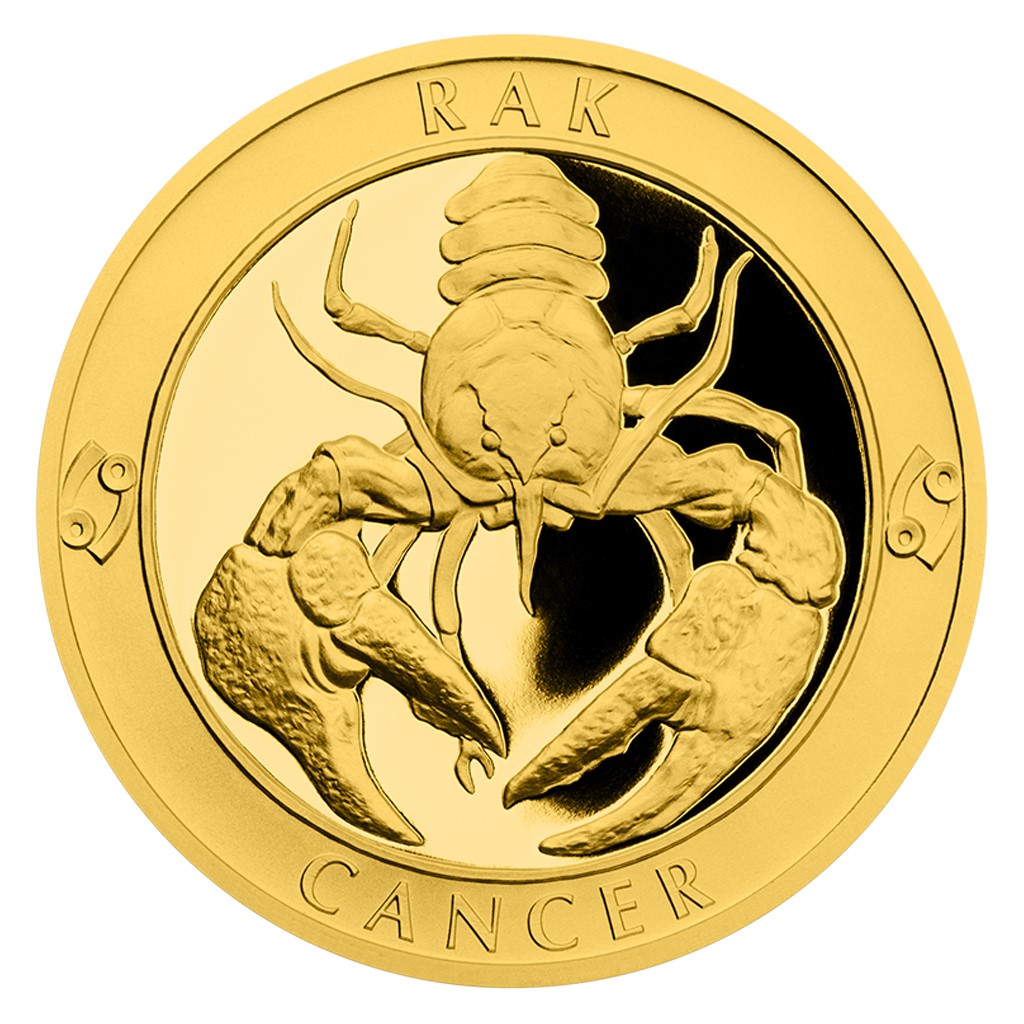 Zlatý dukát České mincovny ze série 12 znamení zvěrokruhu je věnován každému, kdo se narodil ve znamení Raka.