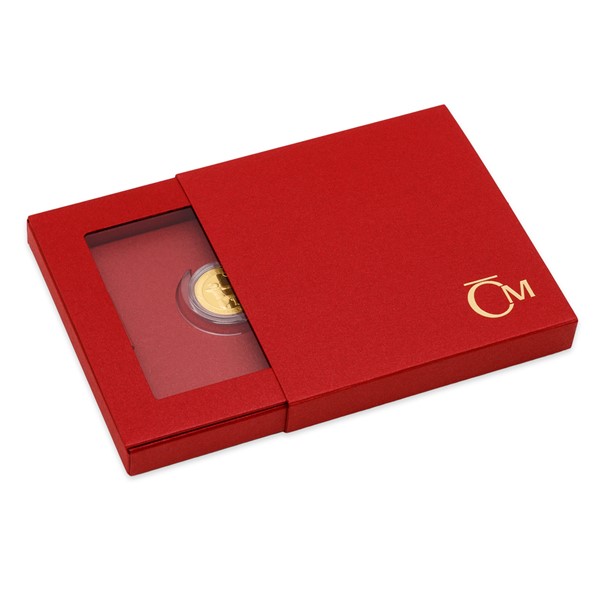 Dukát je uložen do rafinované etue s průhledným krytem, kterou jednoduše proměníte v rámeček pro jeho vystavení.