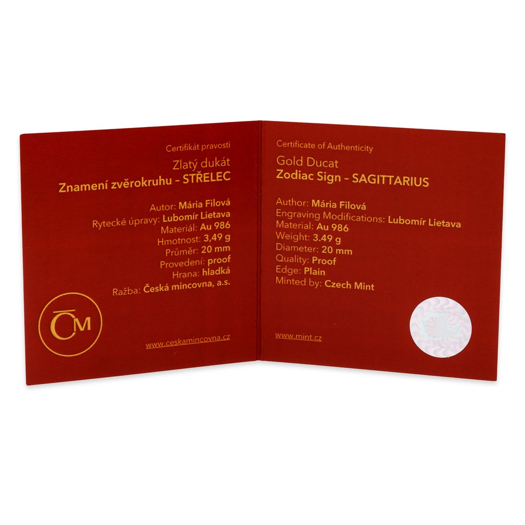 Hledáte unikátní dárek pro muže či ženu, kteří se narodili ve znamení Střelce? Zlatý dukát České mincovny z cyklu 12 znamení zvěrokruhu a vyrytým věnováním se stane jediným originálem na světě!