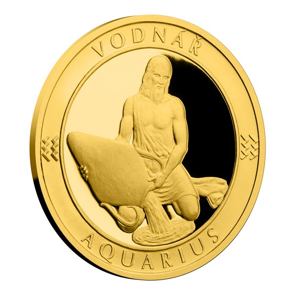 Zlatý dukát České mincovny ze série 12 znamení zvěrokruhu, na který vyryjeme text dle vašeho přání, udělá radost každému, kdo se narodil ve znamení Vodnáře.