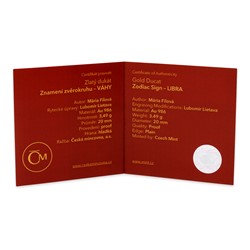 Česká mincovna připravila originální pozornost pro zrozence ve znamení Vah – zlatý dukát z cyklu 12 znamení zvěrokruhu.