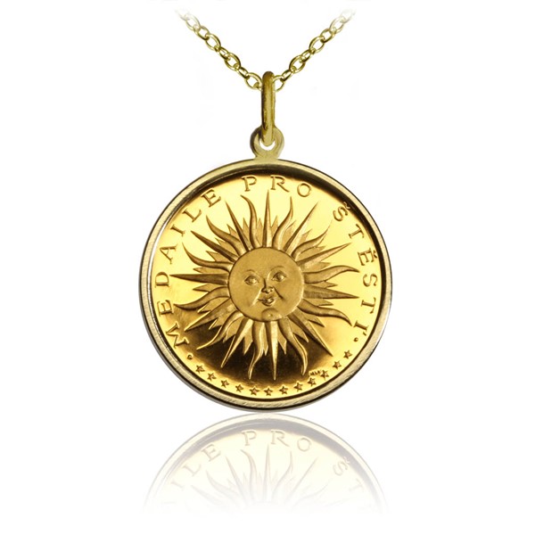 Univerzalitu pojmu štěstí znázorňuje na medailonku slunce a slovo štěstí v hlavních světových jazycích. Na averzní straně je slunce jako symbol, bez něhož by neexistoval život. Jeho paprsky směřují k písmenům ve slovech. Na reverzní straně je slovo „štěstí“ v několika světových jazycích – angličtině, němčině, francouzštině, italštině, hebrejštině, češtině a ruštině.